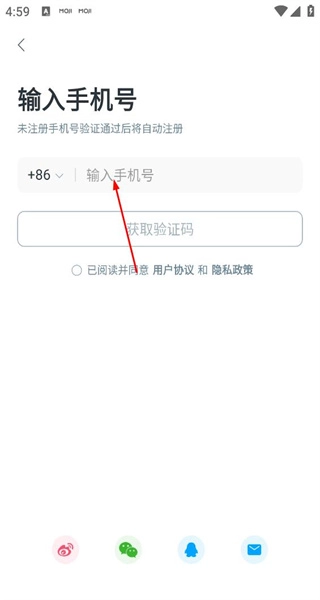 在填写手机号的页面,输入手机号码并勾选相关协议后,即可获取验证码,进而完成登录流程。