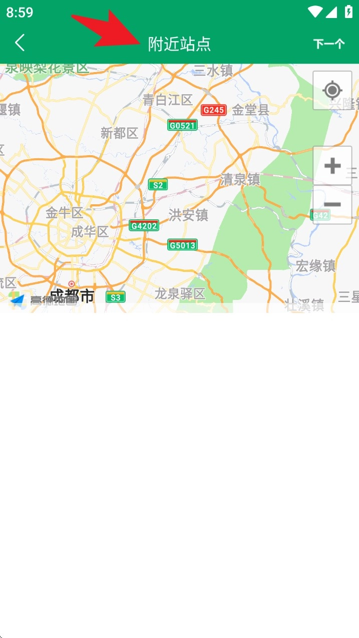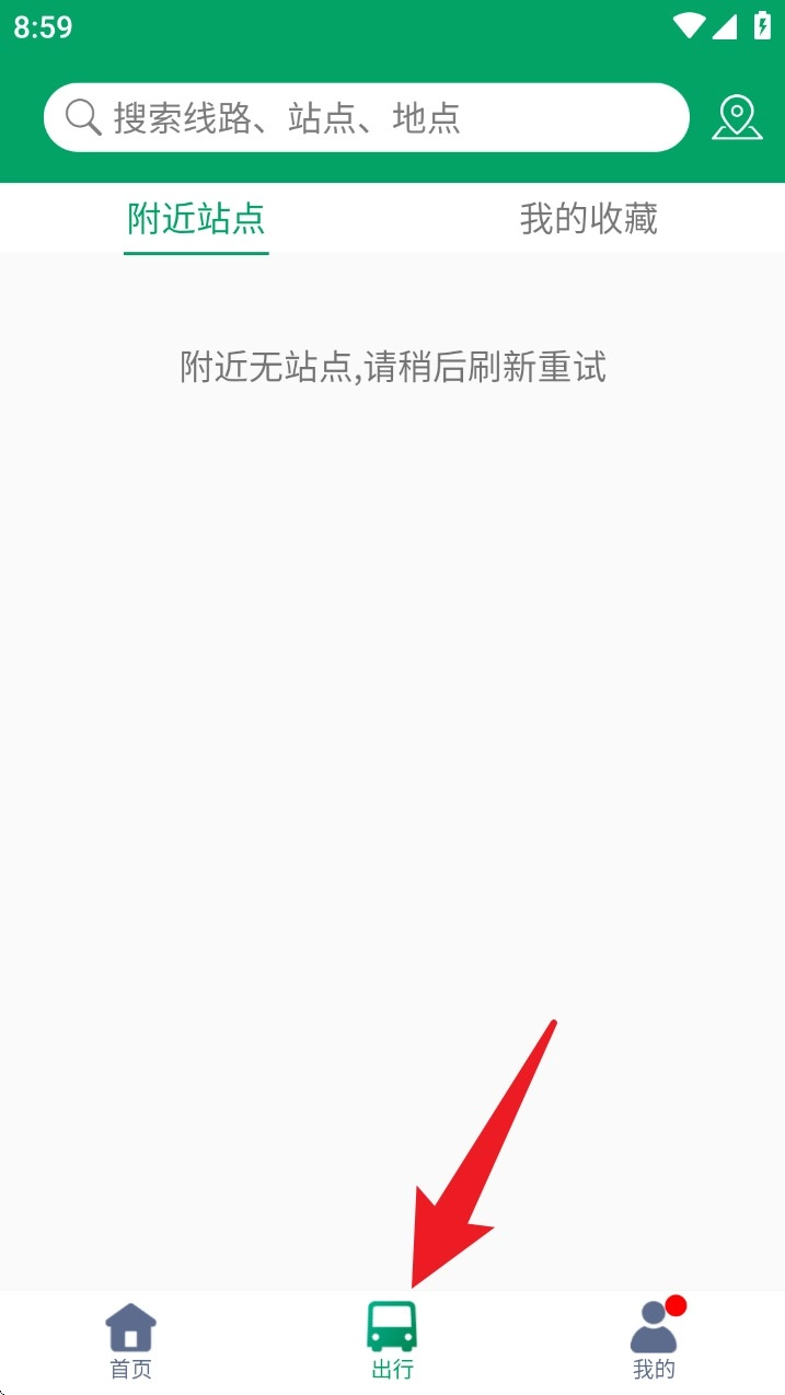 进入附近站点模块后,你能够查看距离当前位置较近的公交站点,从而协助你规划出行路线。