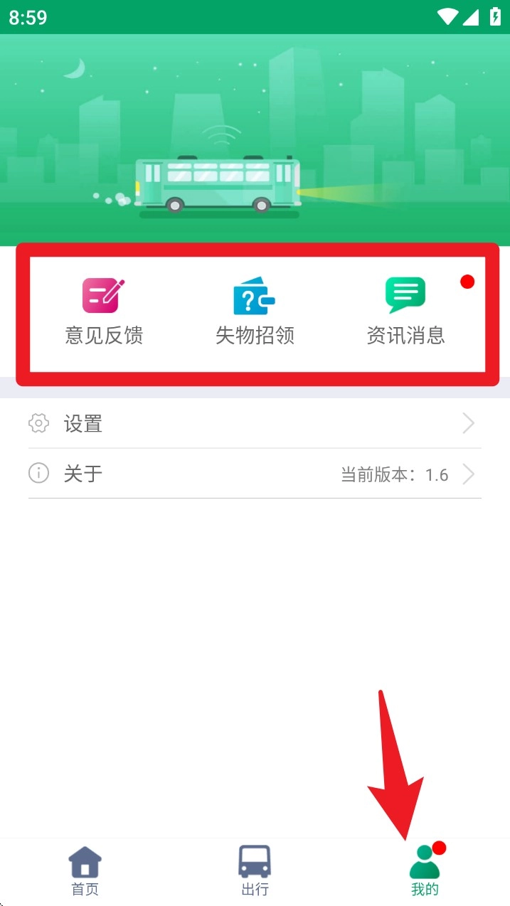 在我的界面里,用户能够查看个人信息、反馈意见、失物招领这类内容,还可以进行相关设置。