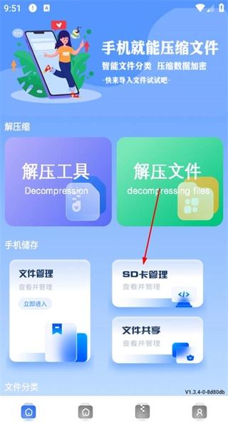 打开软件后,进入首页,找到SD卡管理选项并点击,即可进入SD卡文件列表页面。