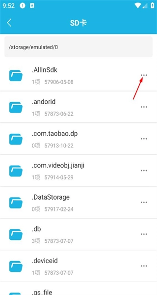 进入SD卡页面后,浏览页面上展示的文件和文件夹,找到并选择目标文件夹,然后点击该文件夹右侧对应的功能按钮。