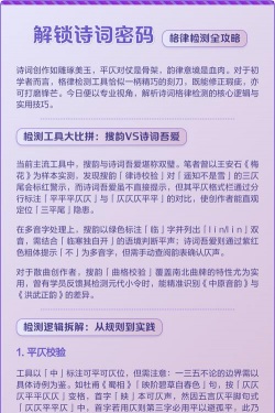 精准把握格律:可娴熟运用平仄对仗押韵规则,切实增强创作水平,使诗词创作更具准确性与规范性。