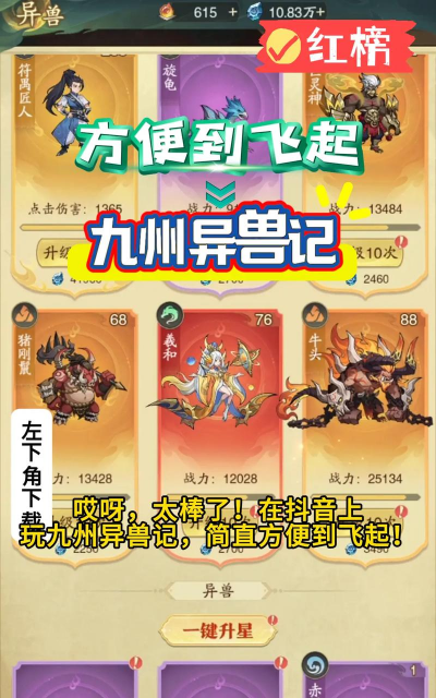 《九州异兽记2025》表现如何?作为一款以《山海经》为背景的修仙题材游戏,玩家可以收集各类神兽并肩作战。游戏玩法十分丰富,涵盖九州探险、副本挑战等多种模式;职业体系也颇具特色,不同职业拥有独特的技能设定,能为玩家带来别具一格的战斗体验,绝对值得大家深入体验这个精彩绝伦的仙侠世界。