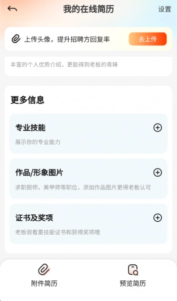进入该平台后就可以着手修改个人简历了,完成登录操作后,系统会自动同步58同城上的简历信息。