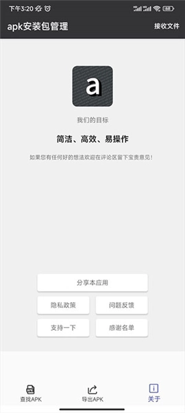 应用以简洁、高效、易操作作为展示目标,同时配备意见反馈、感谢名单等功能,方便用户参与应用优化与分享。