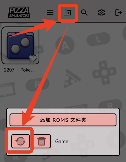 2、点击添加ROMS文件夹,文件后缀必须是.gab结尾的。