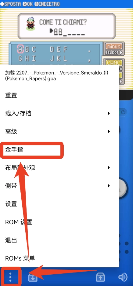 9、点击左下角的三个点可以设置,比如金手指、存档、倒带、重置等等。