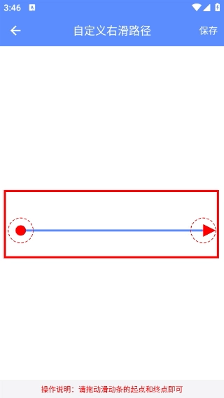 3、进入【自定义右滑路径】页面后,按照操作提示拖动滑条的起点与终点以完成路径设置,页面顶部配备有【保存】按钮。