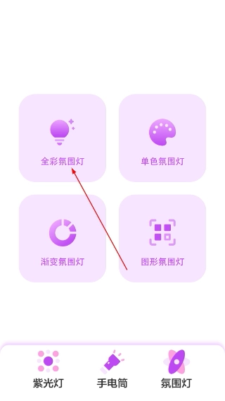 2、在氛围灯类型页面中,点击【全彩氛围灯】这一选项,就能进入到它的设置页面。