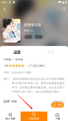 4、找到想看的漫画后直接点开,再点击开始阅读”按钮就能立即阅读了。