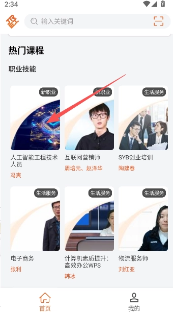 向下滑动特种在线的实用界面,找到职业技能视频课程板块,点击并选择里面的课程。