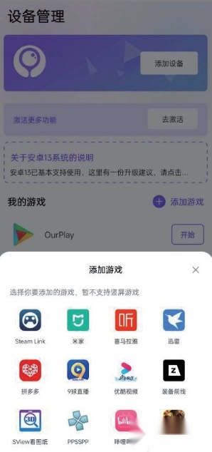 要是没找到想玩的游戏,可以点击添加游戏按钮来添加,比如设备连接的和平精英。