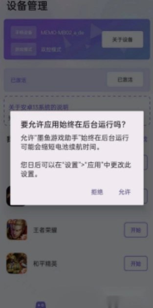 开启所有权限后回到软件界面,会弹出“是否允许应用始终在后台运行”的提示,此时我们选择允许即可。