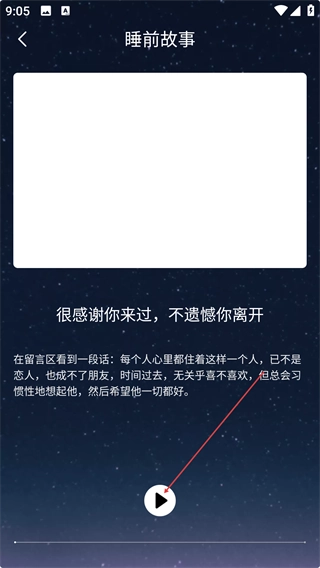 进入单篇【睡前故事】详情页后,点击页面下方的播放按钮,就能开始收听这个故事的内容了。