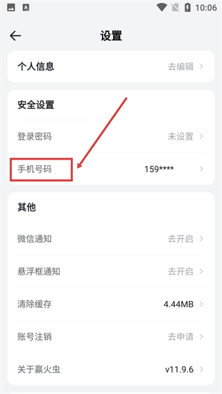 进入【设置】页面后,找到【安全设置】分类下的【手机号码】选项,点击该选项即可。