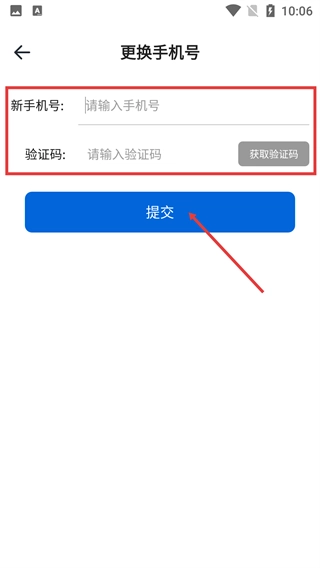 进入【更换手机号】页面后,首先输入【新手机号】,接着获取并填写【验证码】,最后点击【提交】按钮,就能完成手机号的更换操作。