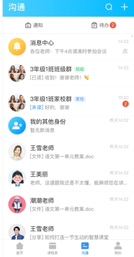 即时聊天、班级圈、课后服务选课及缴费等功能的应用。