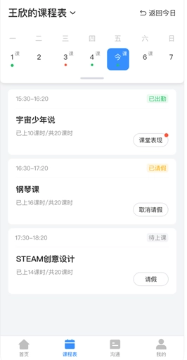 课表:全程跟踪课程托管情况,助力家长更全面地知晓孩子的课程安排及学习进展。