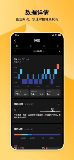 软件的首页呈现了健康数据记录、睡眠记录与运动记录,并通过图表化的形式展示,让信息的获取更为直观和高效。