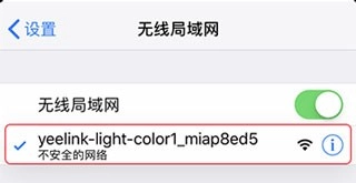 按照屏幕上的提示,在无线网络列表里找到对应的Wi-Fi并选中,之后回到Yeelight界面,静静等待连接完成就好啦。