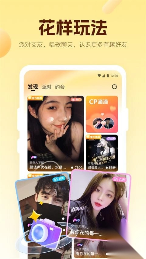 多人在线畅聊,多样主题房间,唱Pia戏互动,浪漫约会体验,还有精彩电台相伴,为你驱散生活的无聊感;