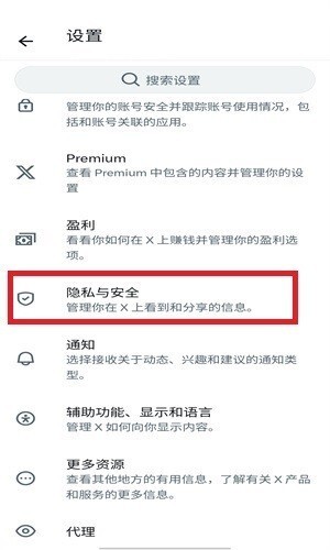 1、点击设置之中的隐私与安全选项。