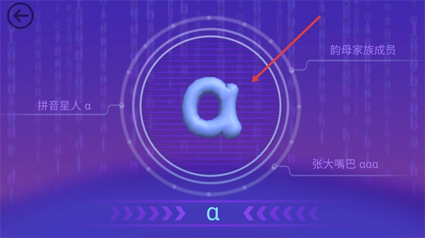 在场景里点击【拼音卡片】类元素,就能进入对应韵母的专项学习界面,启动拼音认知环节。