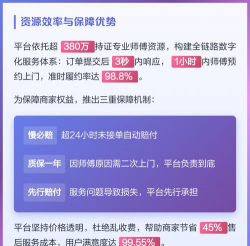 无论是家电故障维修、家具安装等本地化服务需求,用户都能通过一键下单呼叫师傅上门协助。平台的师傅均经过大数据筛选,持有专业资质认证,目前已覆盖全国160万专业师傅资源,服务范围遍及600座城市、3000个区县及40000个乡镇,实现无服务盲区覆盖。