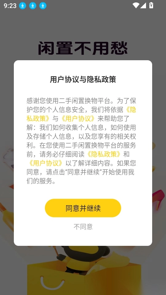 首先打开应用,仔细阅读完“用户协议与隐私政策”,随后点击“同意并继续”按钮进入应用内。
