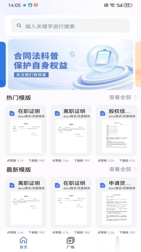 你可以搜索查找想要的合同模板,还能依据自身商务需求一键搜索到所需的合同模板。