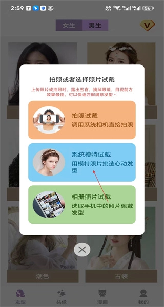 借助虚拟试戴功能,用户能够上传个人照片,再把挑选好的发型添加到照片里,这样就能直观感受新发型呈现出的效果。