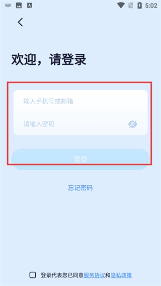 在“欢迎,请登录”页面,填写手机号或邮箱以及对应的密码,点击登录按钮即可完成账号登录操作。