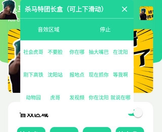 点击“音效区域”按钮就能播放语音,里面包含团长的搞笑语录和直播金句。
