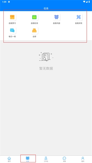 进入任务页面后,你可以选择【自我预习】【自我检测】等功能选项,从而开启对应的学习任务。