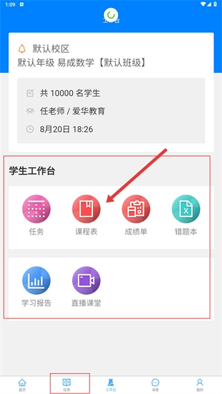 在工作台页面,点击【课程表】选项,就能查看相应的课程安排内容。