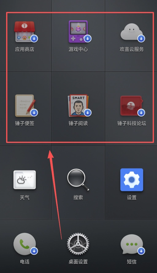 管理服务与工具模块,在桌面底部或是设置界面里整合了欢喜云服务、锤子便签、锤子阅读等官方应用,你能够直接通过此处开启这些应用。