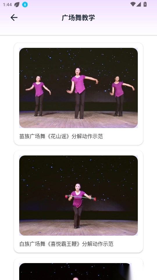 3. 进入广场舞教学页面后,可查找你感兴趣的舞蹈教学资源并点击进入。
