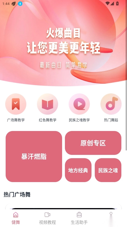2. 进入“健舞”页面后,找到“广场舞教学”功能并点击进入