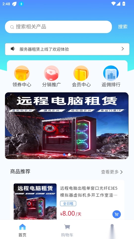 你可以查找想要的远程电脑商品并进行在线租赁使用,还能自由选择租期下单租赁商品。