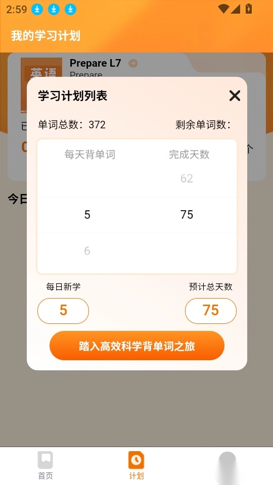 6、这样就能顺利创建专属的背单词计划,并设定单词记忆目标了。