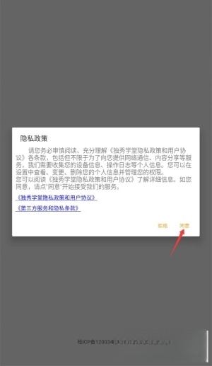 1、当应用第一次被启动时,系统会展示用户协议与隐私政策,用户阅读完毕后点击同意按钮即可进入主界面。