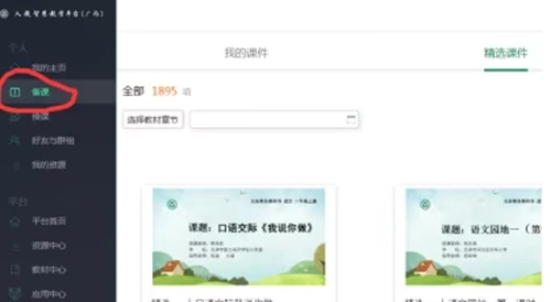 4、只需选择本班或自身所需的数字教材就行,左侧备课板块里有不少精品课件,上课时可以直接拿来用。