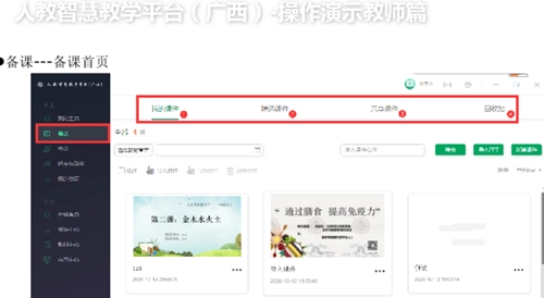 1、“备课”调整为“教学课件”,教师能够在教学课件板块内进行新建课件、搜索课件以及导入课件的操作。