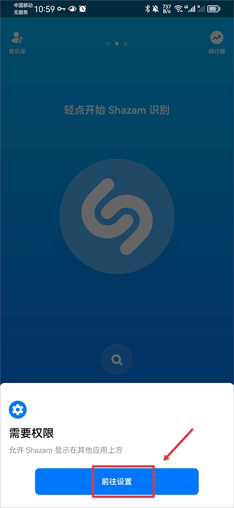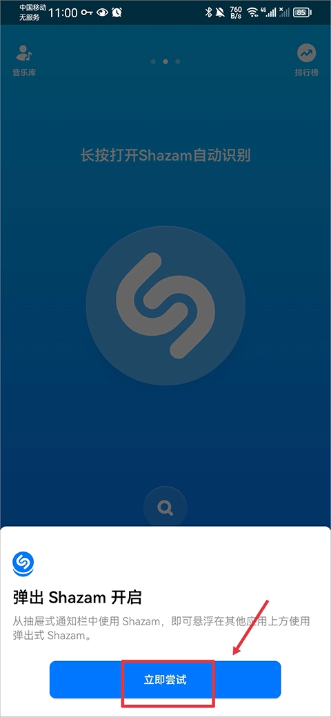 4、开启后返回,会弹出Shazam开启的提示,点击“立即尝试”即可。