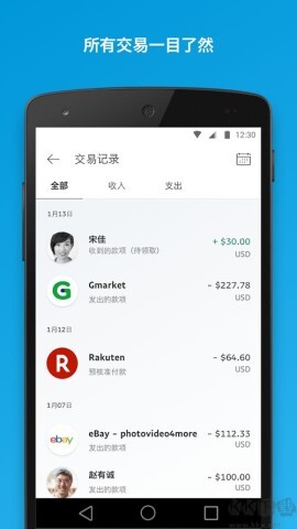 全球支付:PayPal移动支付应用具备全球支付功能,能够让用户不受时间地点限制,轻松完成各类交易。