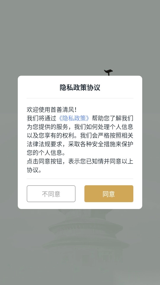 1. 首先打开软件,阅读“隐私政策协议”后,点击“同意”按钮进入