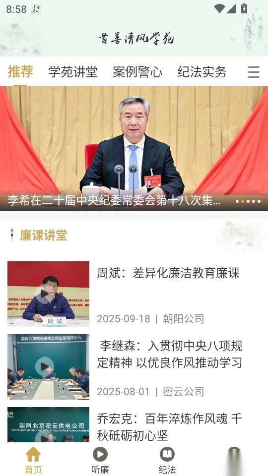 首善清风是一款集纪法百科查询、资讯浏览、视频播放等功能于一体的应用软件,平台汇聚了丰富的热点讲堂教育内容与视频课程资源,用户可便捷获取推荐的讲堂栏目及文章,轻松学习纪法知识。该应用由北京云电网科科技有限公司研发,是专为用户打造的纪法学习平台。此外,在首善清风最新版本中,用户可对感兴趣的视频和文章进行转发分享、收藏、点赞等操作。感兴趣的用户可直接在本站体验使用。
