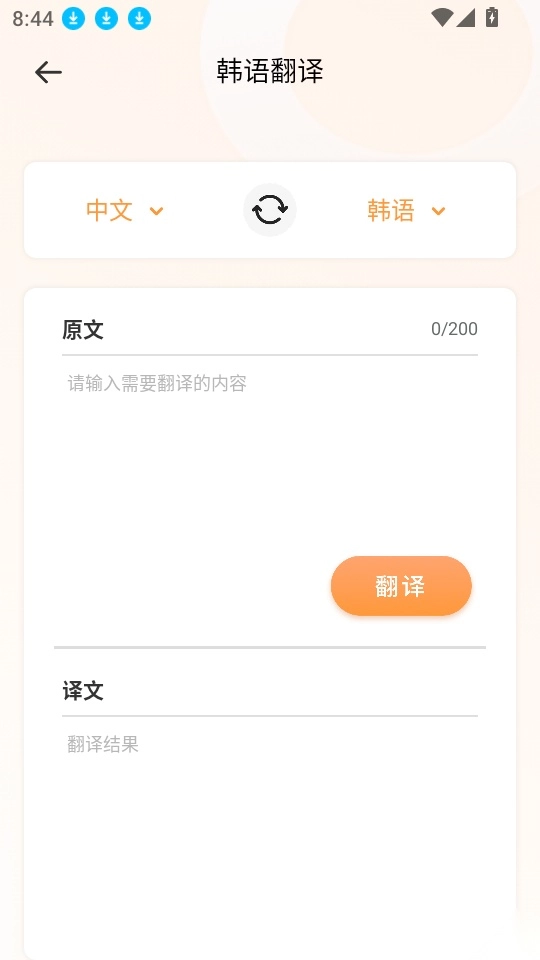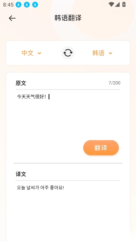 2、进入软件首页后在功能模块中点击“韩语翻译”按钮来进入下一步。
