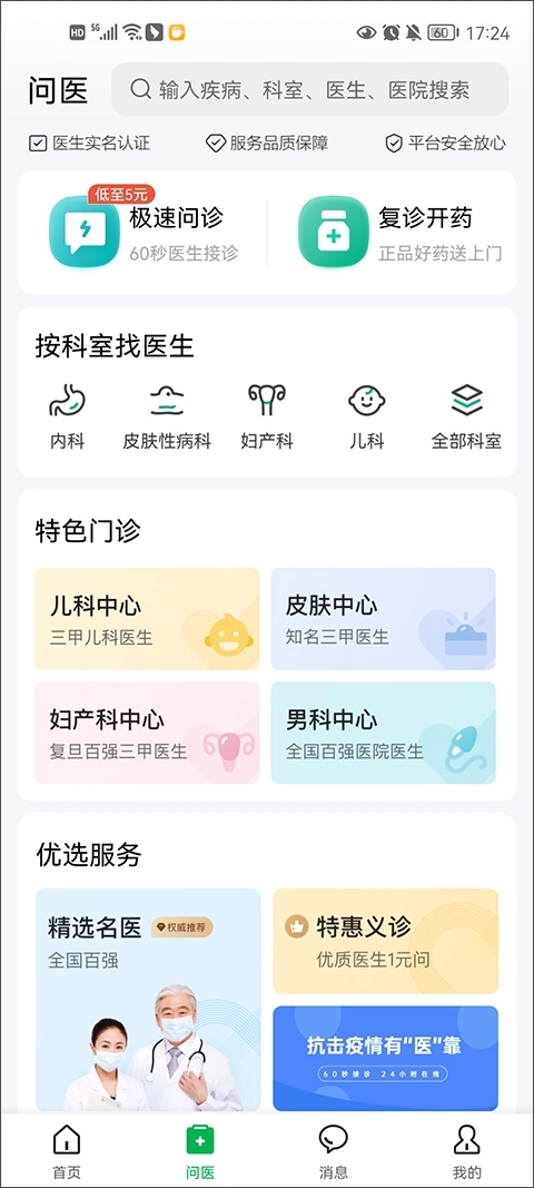 1、首先打开软件,找到【问医功能】,用户可以点击极速问诊功能,这里有专业的医生极速接待,解决你的疑题。