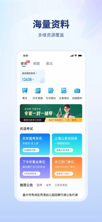 面试用拥有庞大且高质量的题库,收录了近十年的国考、省考真题,以及精心编制的模拟试题,题目总量超万道。题库按照考试科目和知识点进行细致分类,方便考生进行专项训练和系统性复习。每道题目都配有详细的解析和答案,不仅让考生知其然,更知其所以然。